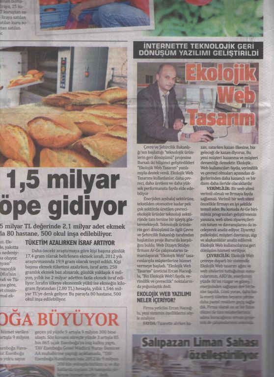 "Bursa Hakimiyet gazetesi Ekolojik Web kampanyamızın içeriğinin haber değeri taşıdığını tespit ederek bunu ekonomi sayfalarına taşıdı..."
