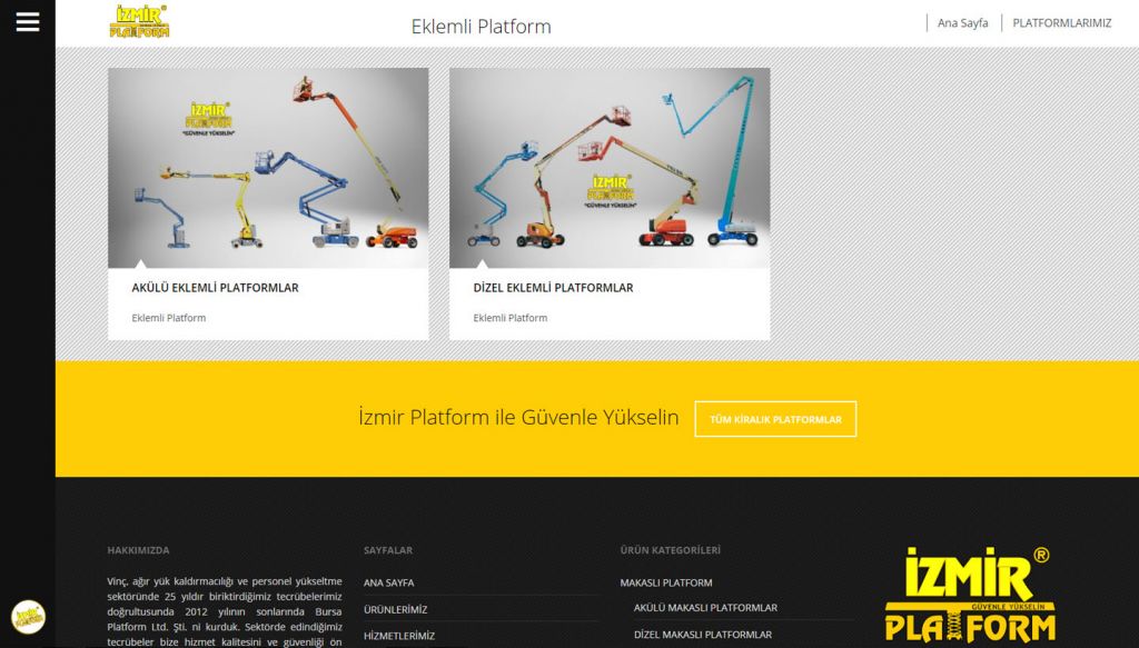 İzmir ve çevre illerinde platform kiralama hizmeti veren İZMİR PLATFORM LTD.ŞTİ. web sitesini başarıyla tamamladık.